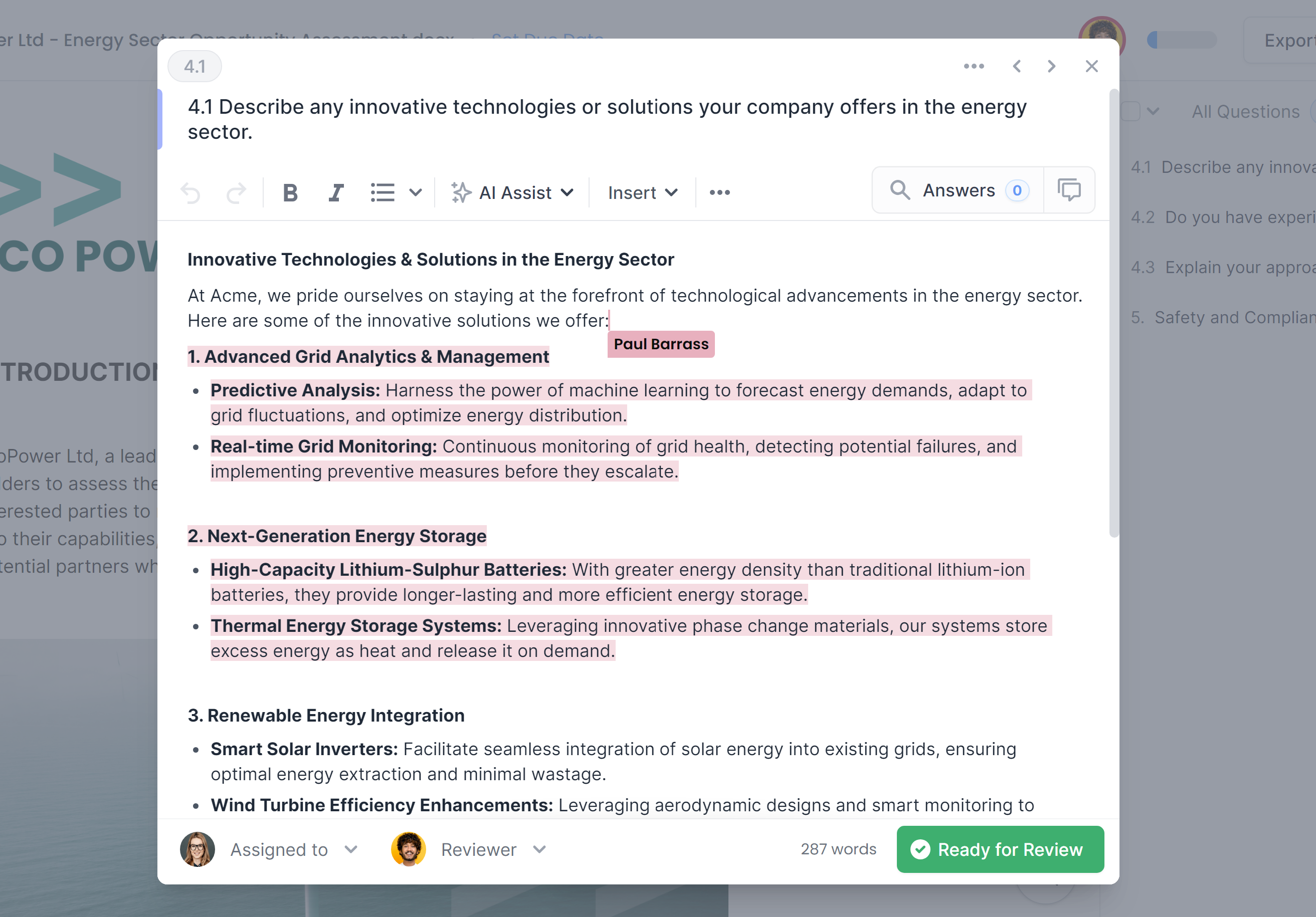 Assign questions, track progress and ensure quality responses with our review workflow.