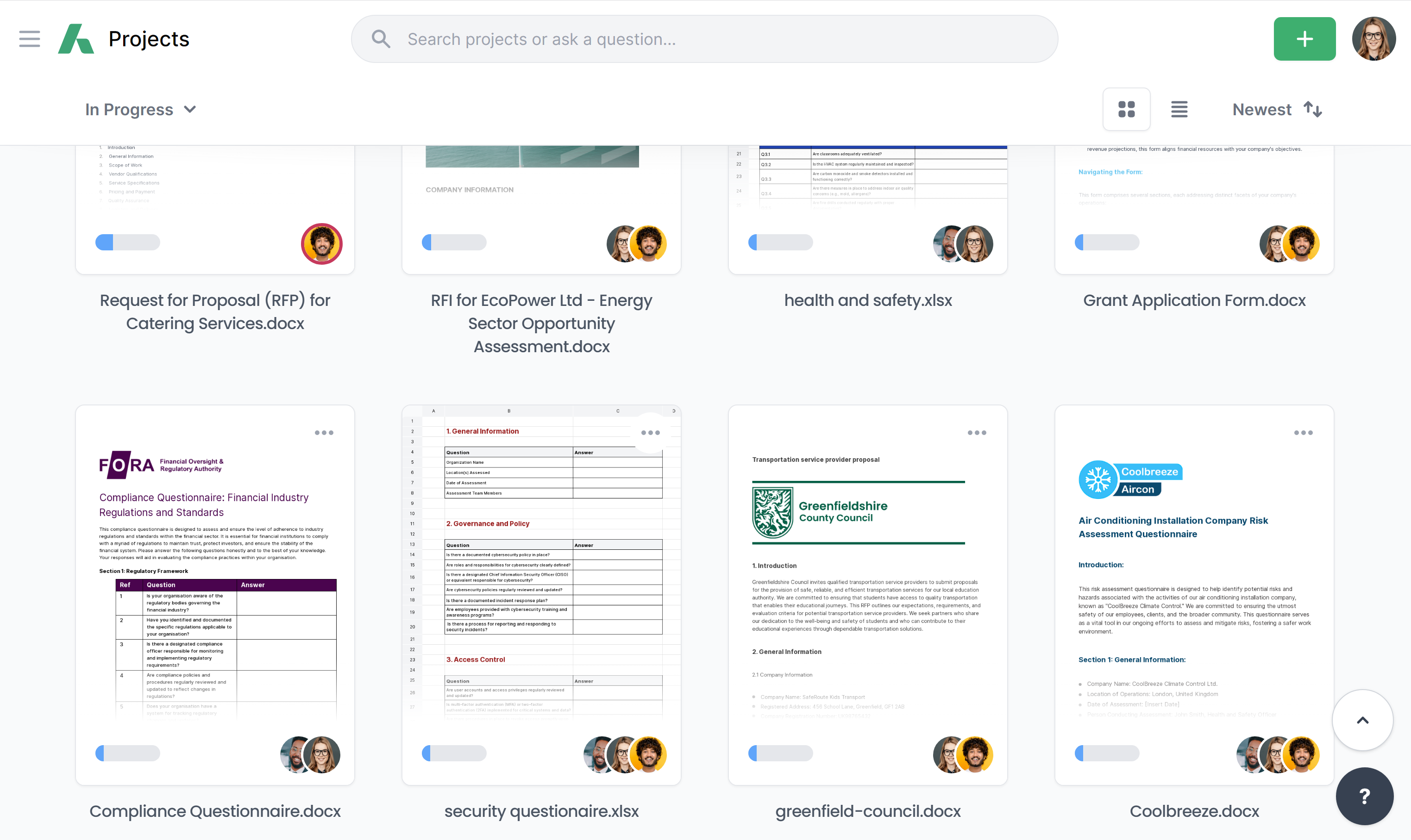 Import your RFP, RFI, Security Questionaire or other tender document, and Answertree will start saving you time!