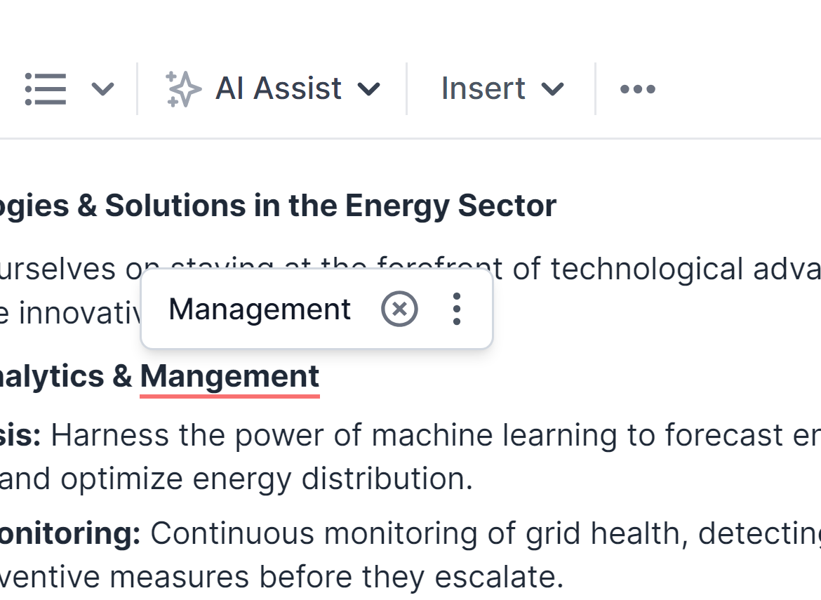 Our solution overlays the type of spelling and grammar detection you're used to in your favourite word processing tools - so there's no reason to leave Answertree while you're preparing your response.